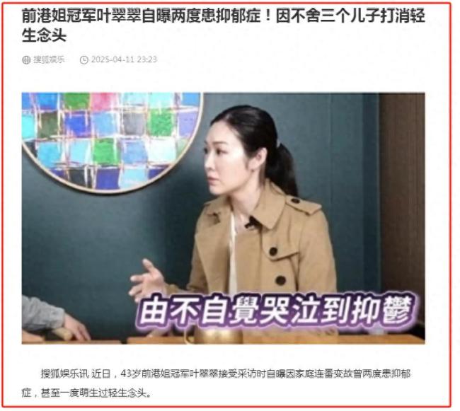 她是港姐冠军,曾穿戴王冠站在镁光灯下的“人生赢家”。可那一刻,她只想从浴缸里放水,然后永久沉下去。2005年,叶翠翠成为第33届香港小姐冠军。那一年,她是许多港人心中的“香港之光”,笑脸香甜,气质大气,出路不可限量。但是15年后,她成了三个孩子的妈妈,终年睡眠不足,心情溃散,乃至开端考虑怎么样脱离国际才不被发现。最严峻的一次,她真的去买了那些东西。也曾试过在浴缸里放满水,坐进去,看着水面发愣。但就在那一刻,她忽然想起了三个儿子。“假如我走了,他们怎么办?会不会很快就忘了我?”这一想,眼泪瞬间决堤。那天她没有死,却像是“重生了一次”。